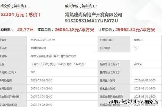 今年4月土拍中,建发以总价约5.3亿抢下,成交楼面价26054元/㎡,溢价23.77%。