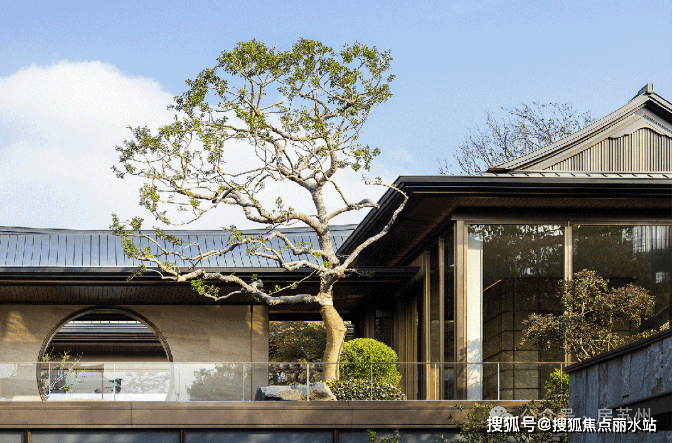 外立面以姑苏遗留宋代建筑为蓝本,遵循宋画的楼台亭阁,顶部曲角飞檐设计,复现宋式之韵;