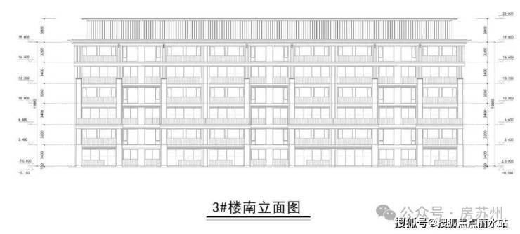 3#楼南立面图如下:叠加首层层高3.4m,二层高3.2m。