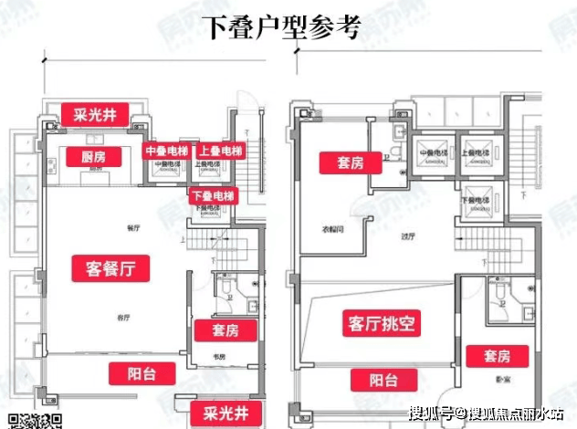 值得一提的是,上中下叠都是独梯独户,入户动线分割,互不打扰。