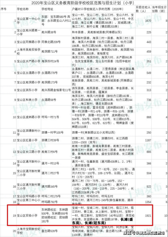 根据2020年3月最新公布的《2020年宝山区小学对口地段表》,上海长滩一期、二期被成功划入宝山老牌名校——宝山区实验小学学区。