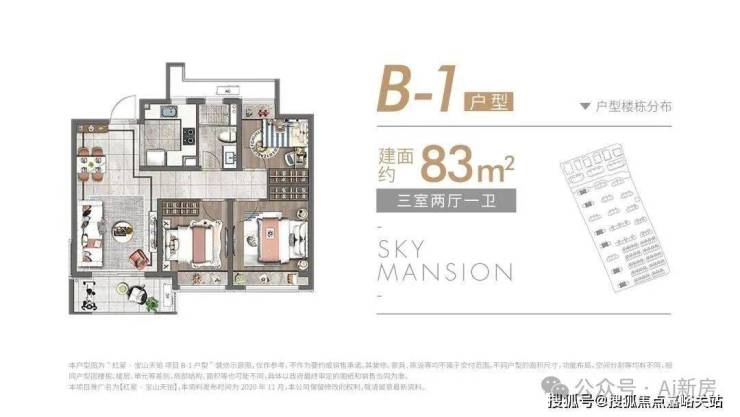 除了建面约89㎡的洋房,建面约83~89㎡高层户型也各有所长,均是三房设计,无论是从结构布局,还是空间利用皆相得益彰,承载一家人的美好生活。高层户型如下:
