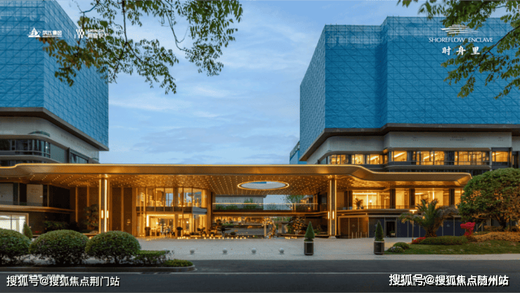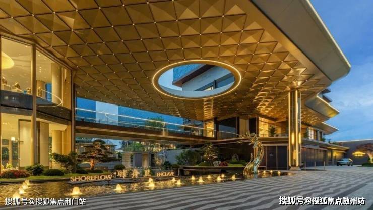 与这两年流行的“阔绰”门头相比,这座鎏金门头最大的亮点是通透——不仅顶部有一个圆形的镂空,偏置的大堂也为风景让了路,正前方没有任何遮挡,反而把最精彩的立体花园化作一幅动态图景,点缀了整条街道。