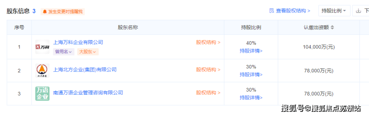 从目前北万的股权结构来看,万科(上海万科企业有限公司40%+南通万语企业管理咨询有限公司30%)占股70%!