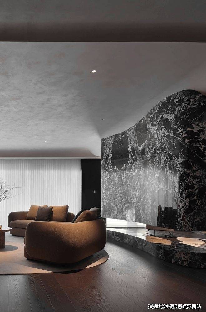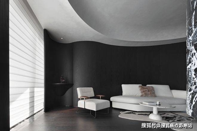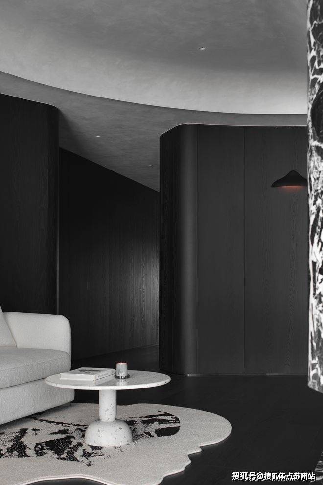业主的想法与执著设计的理念不谋而合,满足功能性需求后,以“隐于形的诗意”为核心,通过精心策划,打破了线性空间的固有逻辑,于蜿蜒的曲线形态与深色空间画布中,缔造出明朗大气、优雅静谧的氛围感。
