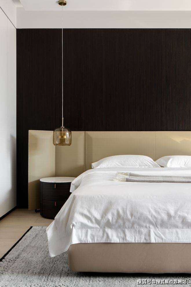 卧室空间更为重视尺度感与氛围的营造,在色彩、灯光及温润材质的互相映衬下,让疲惫的身心得到栖息。