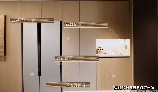 上海宝山招商时代乐章售楼处电话:400-8828-814【营销中心】入户后,第一眼就可以看到玄关柜采用石材台面,下至标配鞋柜精灵,在S墙创新设计后,首批次房源更是额外赠送西门子双开门冰箱这在以往可是上海千万级新房的交付标准: