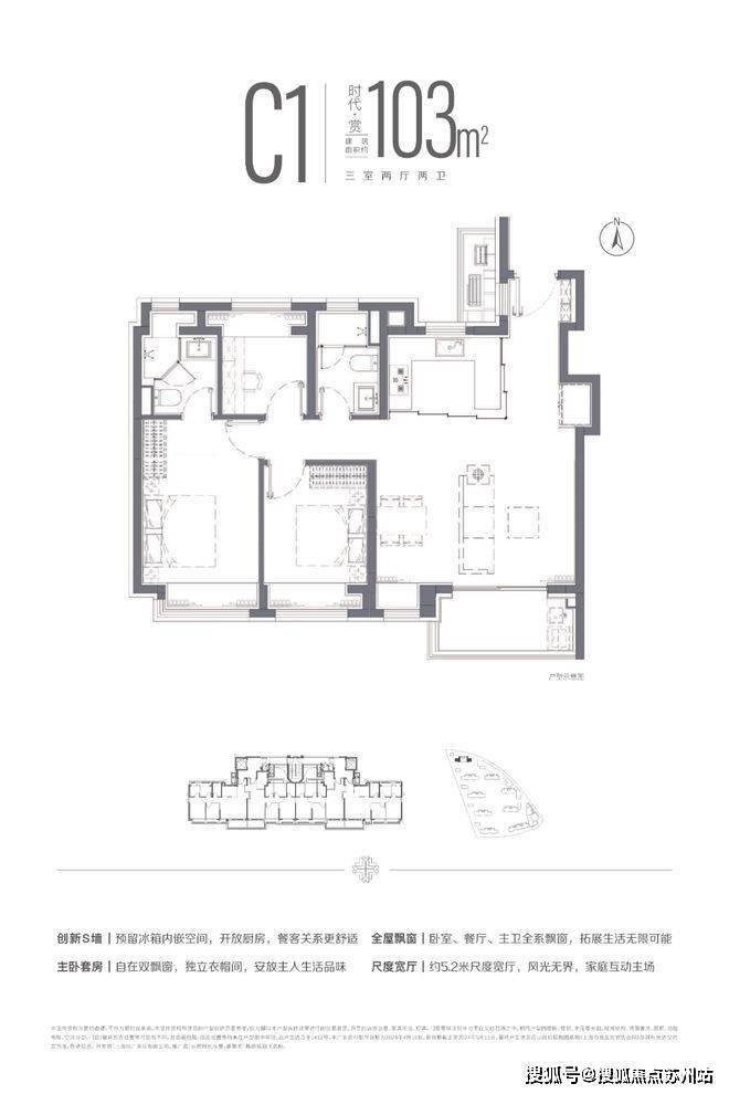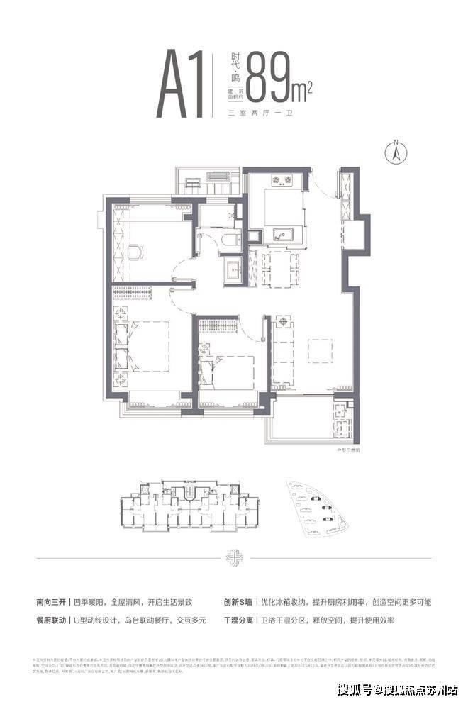 上海宝山招商时代乐章售楼处电话:400-8828-814【营销中心】这个户型不仅拥有传统3房的必备优势:例如三开间朝南、动静分离等等,整个户型的采光、通风视野以及私密性都非常出色