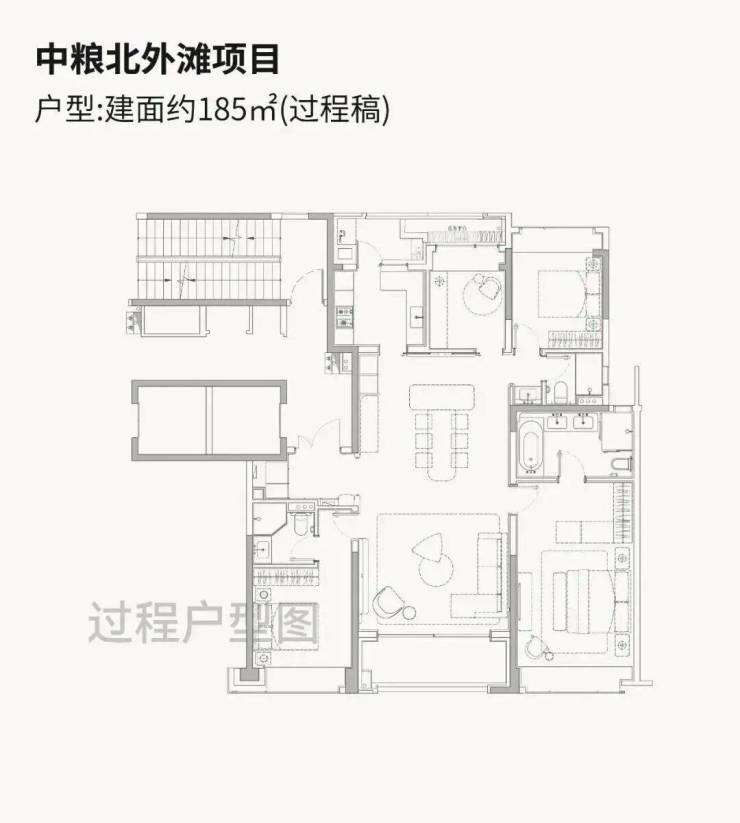 中粮·北外滩壹号即将入市的高层户型建面约185-228㎡纯粹4房,尺度感相当奢阔!高层户型均为两梯两户独立电梯厅配置,隐私性与尊崇感拉满!