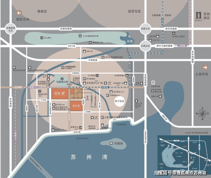 【资源】地铁4号线(木里站)、约240000㎡公园、约20公里太湖沿线生态大堤,苏州湾中心广场、地下空间(橙天里)、永旺梦乐歌林公园、悠方购物中心等配套一应俱全