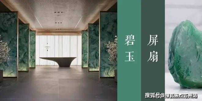 实地踏访「湖颂丹青府」实景示范区,一面海浪纹理的翡翠大理石景墙—「翡翠影壁」赫然入目,如碧波般矗立于街角。