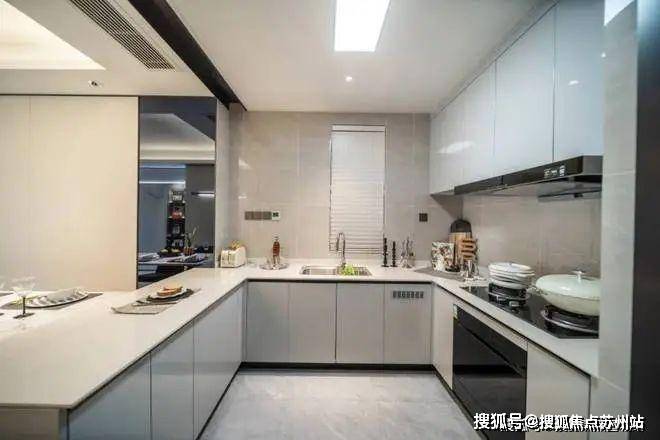 厨房U型台面设计,操作空间更为宽裕。次卫干湿分离,主卧带走入式衣帽间套房设计。