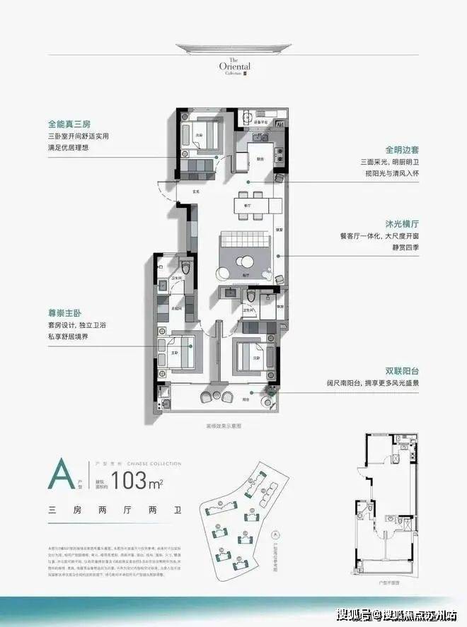 ★ A户型 建面约103㎡,三室两厅两卫布局,约6.1米的面宽的大横厅,堪比改善大宅尺度,南向还有双阳台连通两个卧室。湖颂丹青府首页售楼处电话☎:400-8828-814✔✔