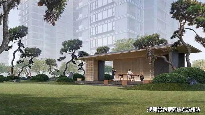 价值近百万的9棵黑松,围合约1000㎡的度假草坪,配合吧台水池和休闲座椅等设施,复刻出“松下会友”的雅致情景。