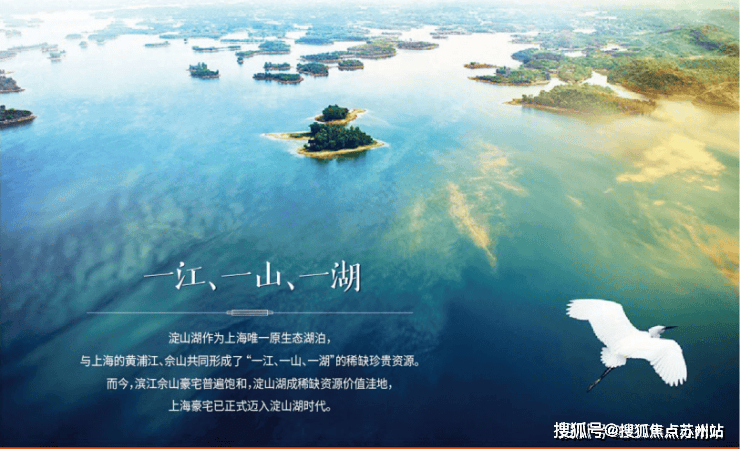 淀山湖作为受到上海虹桥商务区辐射的滨湖休闲度假区,与上海的黄浦江、佘山共同形成了“一江、一山、一湖”的稀贵资源。整个淀山湖拥有超过62平方公里的醇美水域,相当于12个杭州西湖那么大。淀山湖,是上海母亲河黄浦江的源头,素来有上海“后花园”的美誉。