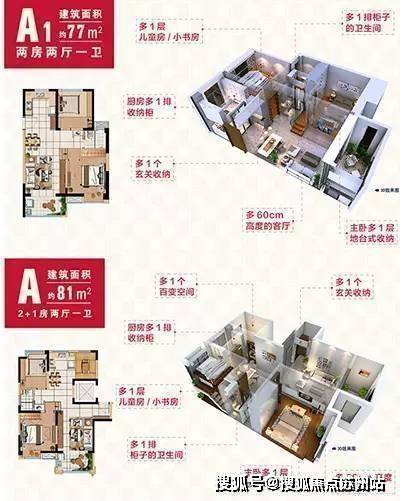 2、户型紧凑、实用,77平2房和81平小3房户型稀缺,总价相对低;