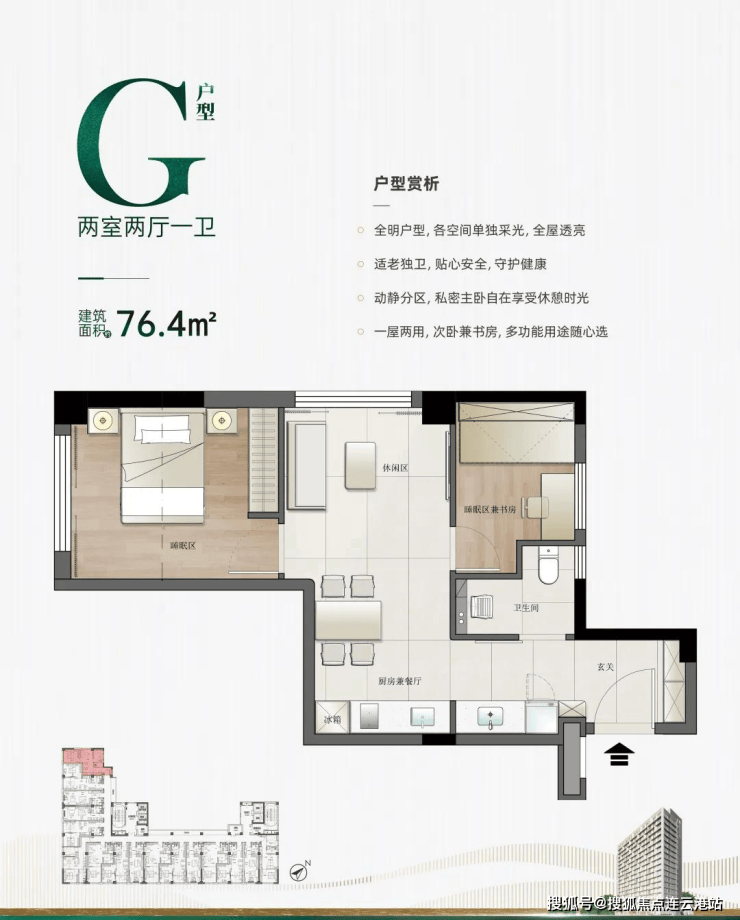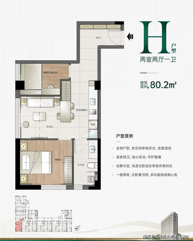 一室两厅一卫:约65.2-80.2㎡(C/D/E户型)