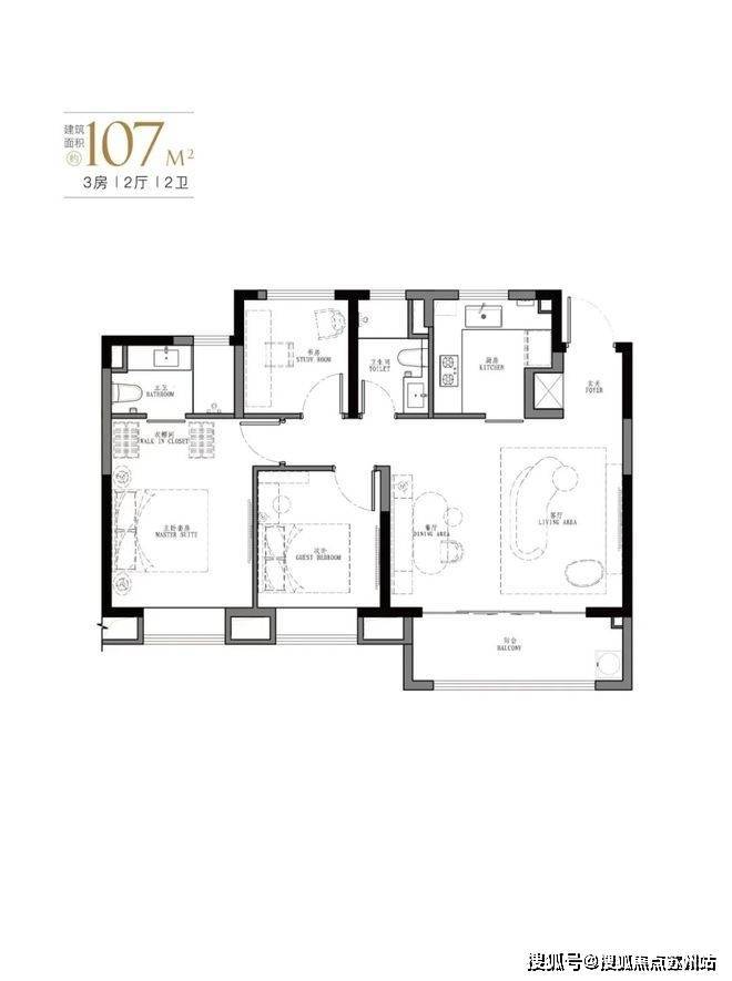 【星尚·观澜世嘉】将推出4种户型,103㎡、107㎡的三房两厅两卫及123㎡、129㎡的四房两厅两卫,共计550套可售住宅.以下是户型分布图:
