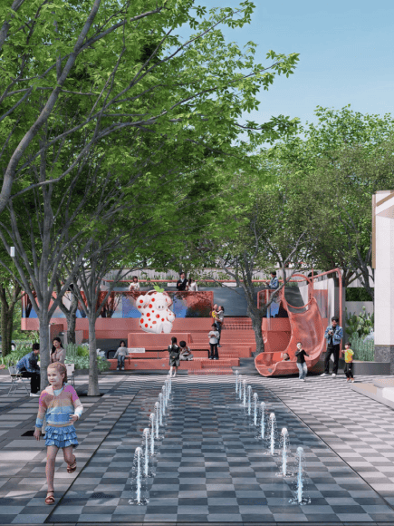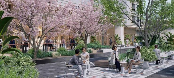 林下戏水广场藏着孩子们的笑声,水花飞溅中,家长们在树荫下闲谈,自然与童趣在此碰撞.黄金街角集合了咖啡馆、便民超市等业态,步行即可满足日常所需,转角遇见的不仅是商品,更是熟悉的街坊笑脸.