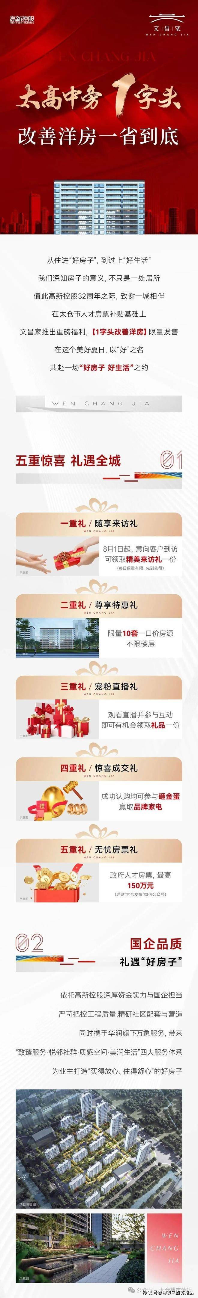 在城市开发领域,高新控股潜心深耕,执笔逾百亿人居版图,文昌家项目,作为集团在科教新城的高光首作,高新控股秉承30载国企精工建筑的严苛传统,品质考究无处不在,致力于以国企匠心精神,为太仓菁英们打造理想人居标杆。