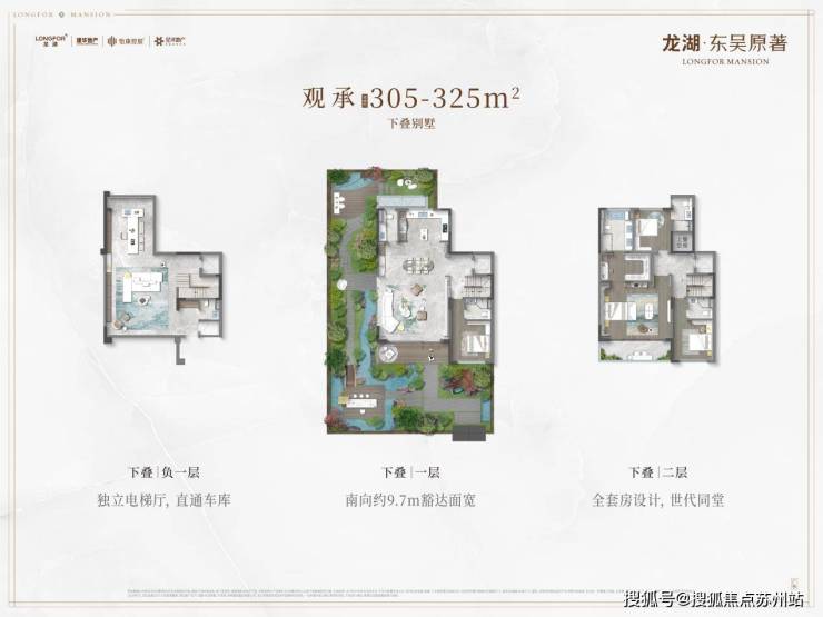除了顶级的"大隐"系列,还有"观承"系列的叠加别墅,建面约220-325㎡。它的亮点包括: