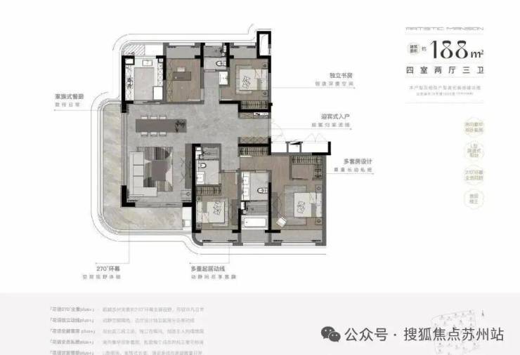 产品哲学:以"垂直花园社区"为理念,通过"立体绿化系统+模块化户型"实现建筑容积率2.2与40%绿地率的平衡。获评2024年苏州市"十大期待楼盘",其"阳台花园专利设计"(专利号ZL2024 2 056789X)开创了苏州高层住宅生态化新范式