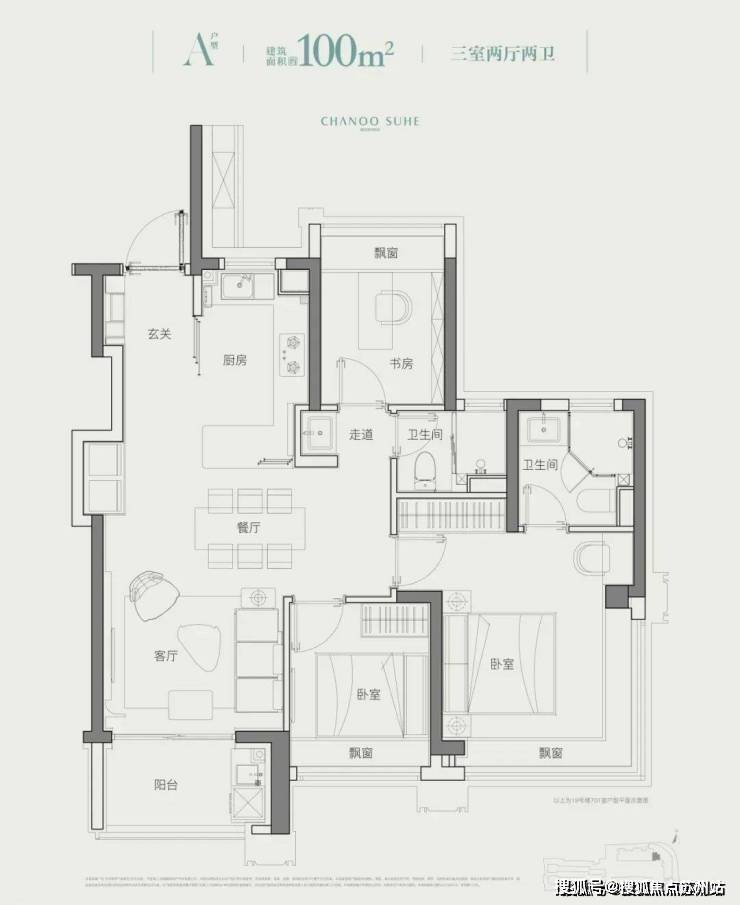 建面约100㎡三房苏河瞰景奢宅