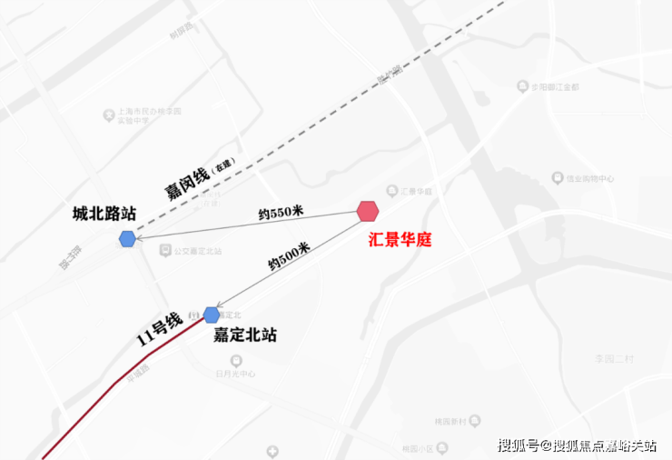 11号线嘉定北战距离项目仅约500米,嘉闵线城北路站距离项目约550米。