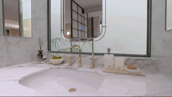 卫生间采用杜拉维特台盆、汉斯格雅龙头,更有定制科勒龙头,堪称全明星阵容的感官盛宴。