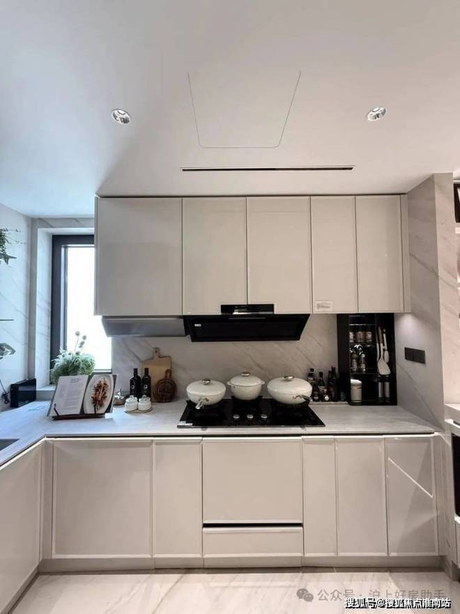 橱柜顶部镜面打造展示级收纳,这一设计细节充分考量了生活中的收纳需求与审美追求,让空间既实用又美观。