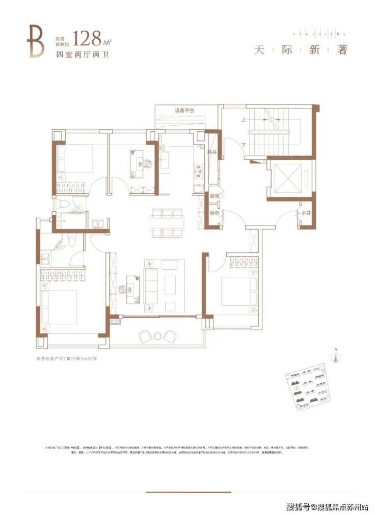 2)建面约128㎡四室两厅两卫