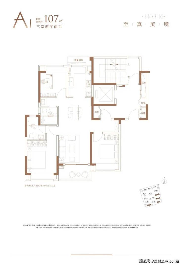 1)建面约107㎡三室两厅两卫