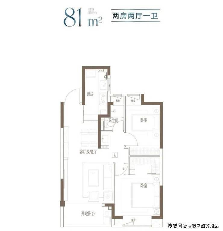 建面约81㎡2房2厅1卫▼
