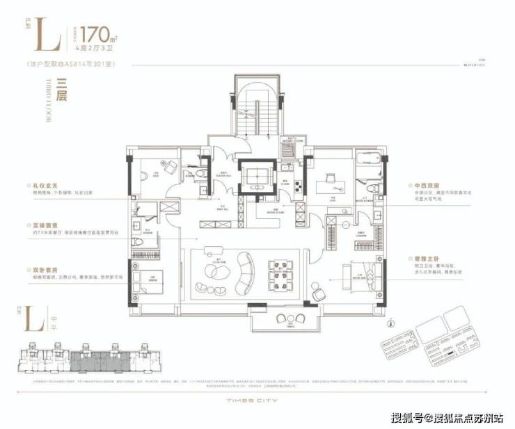 社区内部围绕叠墅区、小高层区以及高层区,打造三大主题花园中庭。