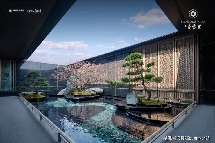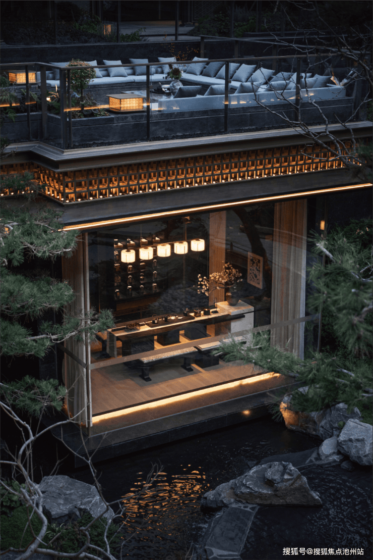 漫步于光影交织的幽静庭院,您将踏入一方充满诗意的天地。潺潺流水映照着婆娑树影,挺拔树姿为这片空间注入向上的生机,纵向延伸出无限的视觉张力。这座下沉庭院,不仅拉近了建筑与自然的情感共鸣,更使室内与景观紧密相连、和谐相融。每一扇窗户,都犹如框中的一幅生动山水画。