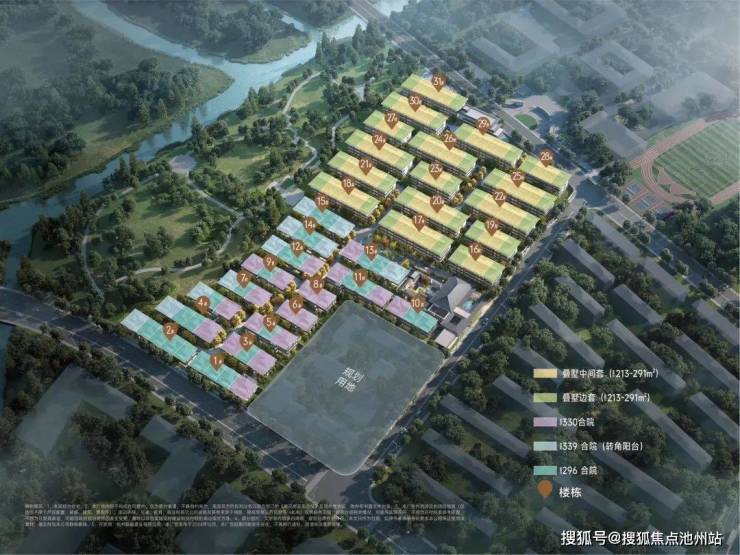 项目定位为高端排屋及叠排社区,建筑设计以新宋风为特色,融入超山宋梅古韵的历史人文底蕴;整体布局以中央山水景观轴为骨架,营造“一轴一带八景十巷”的多进式园林体验。并且该地块西面为超山名胜风景区,西北面有丁山湖和塘栖古镇景区,整体山水资源丰富,呈现“蓝绿相织,山水相连”格局。