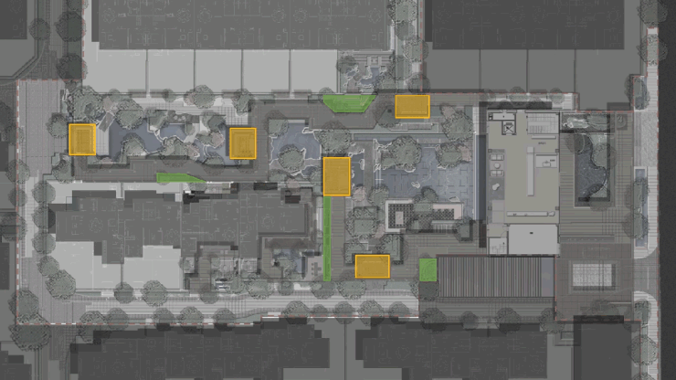 设计以中国古典园林狮子林为原型,在22#“泉香”构筑出了一处回环曲折、层次深奥,以水为主题的“层叠游园”式官邸大宅,立体化呈现园林空间的曲直、疏密、幽旷,以期达到“游目足以骋怀”的效果。走入其中,三种递进景别层次:湘湖的群山大湖为远景,庭院飞瀑与巍峨建筑为中景,山水松石为近景。