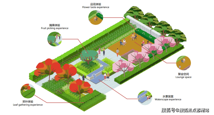 强调疗愈、健康、解压的乐龄园H E A L I N G G A R D E N,用八仙花、黄杨、月季、樱花等不同药用植物的味道与触感,来抚平你一天的疲惫。