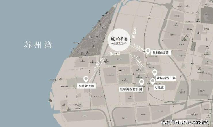 约800米太湖万顷波光,约300米东太湖生态园。外苏州河、顾家荡河、鲈乡河,三河环绕,一座城市半岛。繁华深处,独享静谧,浓荫掩映,贵胄之家。