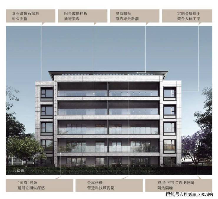 琥珀半岛匠著立面美学,双层中空LOW-E玻璃栏板,隔热隔噪,高窗墙比,通透美观,定制金属扶手,契合人体工学;“画眉”线条,延展立面纵深感;玻璃与真石漆,构建立面美学的同时,做到了环保与舒适。通透的立面设计,将室内与室外连接,央座观景视野,呈现城市倒映与自然辉映的宏大艺术张力。