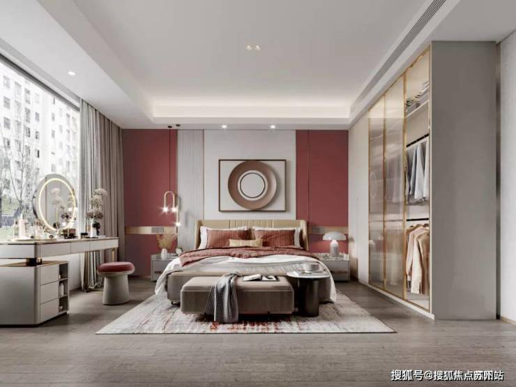 而在主卧的空间规划上,更强调视野的开阔感,超大面积的透光飘窗,使视线及光线得以穿透并展现视觉张力,让空间更显层次感,光影之间仿若置身未来人居之中。