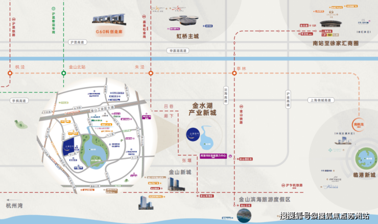 项目地处金山金水湖产业新城内,金水湖产业新城围绕 “创业金山、宜居金山、和谐金山”的总体目标,以 “绿色生态、低碳节能、智慧互联”为三大特色亮点,打造集居住生活、商务办公、休闲娱乐于一体的现代化智慧新城。