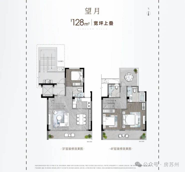 上叠建面约128㎡,3房3卫,带星空露台与楼顶空中花园,将天空与风景无缝接入日常生活。