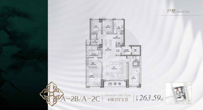 B地块高层公寓户型主要为三房及四房,面积段为166-254㎡,强化房间功能性,私家电梯厅入户,礼仪性玄关,主卧套房设计。
