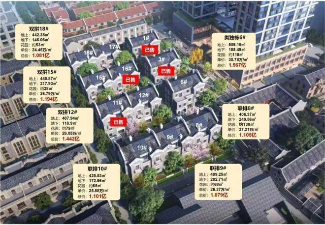 在售楼栋:15#·445.87㎡、18#·442.35㎡(双拼别墅)
