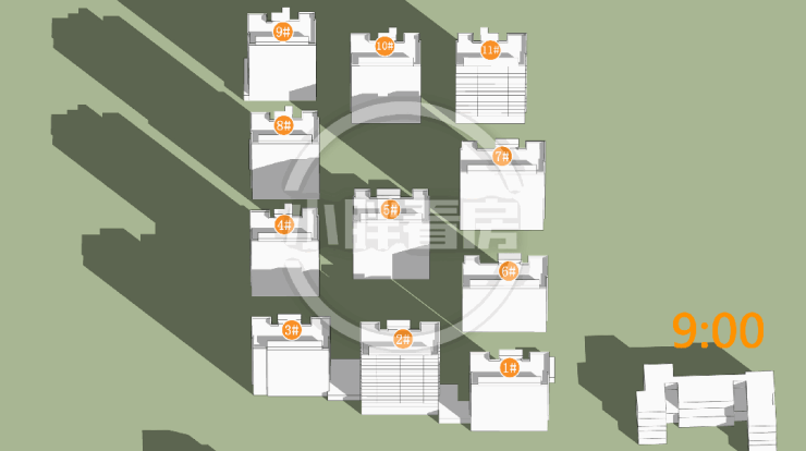 春分秋分(9-15时)在售楼栋日照时间和动图