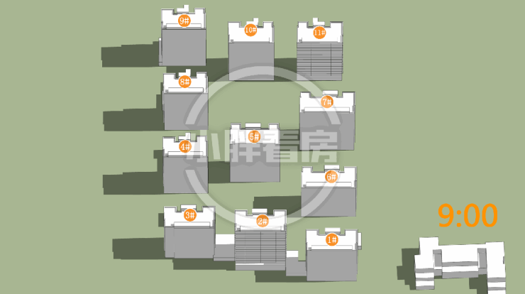 冬季:2#采光优异几乎不存在遮挡。11#低层受遮挡。就具体遮挡时间而言,11#除早晨和傍晚外其余时间段均受遮挡。