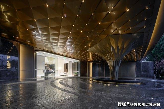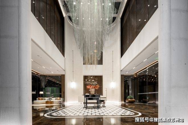 项目主入口仿照五星级酒店打造环岛式落客区,超48米星级酒店式迎宾门廊、约10米挑高归家大堂。