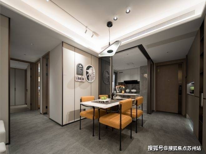 LDKG设计让客、餐、厨、阳台四个空间打破传统布局中的“隔阂”,几个功能区独立又互通,将空间功能进一步放大。