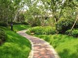 社区景观深度融入莘庄梅花文化与水乡文脉,打造多重主题空间:近24米宽的“疏影鎏光”大门与成排香樟,营造树影流转的归家仪式;“清晖长廊”串联会所与宅间,实现风雨无阻的归家动线;“碧溪翠谷”则以立体山地景观,复刻自然原生肌理。
